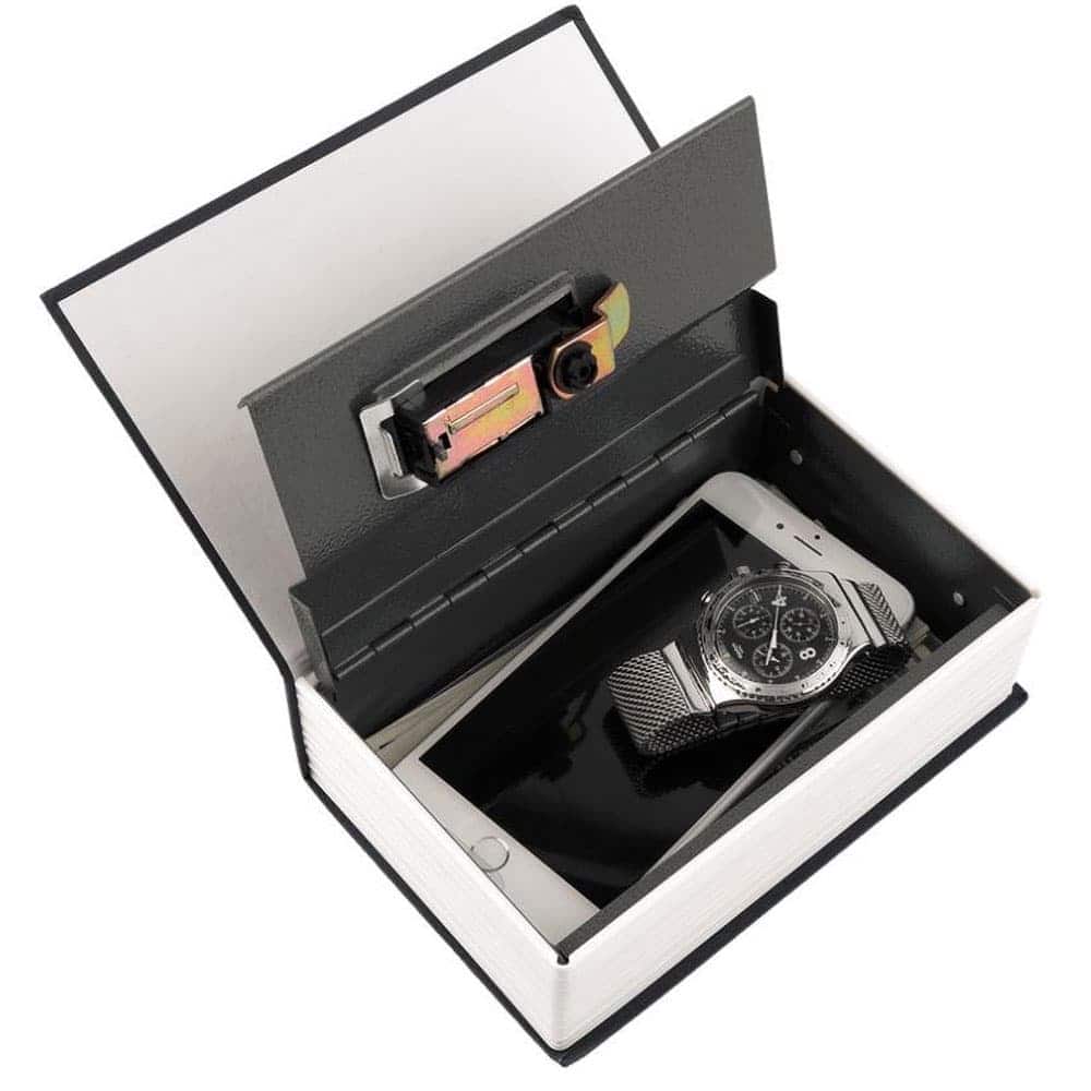 Keep your valuables securely locked away in the Key Locking Book Safe! This safe is designed to surprise any unwelcome guests and deter any potential thefts with its deceptive design. It looks like an English Dictionary sitting on your shelf, but tucked inside are plenty of compartments that you can use to store small pistols, cash, jewelry, credit cards, and more. Its interior dimensions of 9″ x 5 1/2″ x 2″ makes it just big enough to fit multiple items without taking up too much space and its outer dimensions are 9 1/2″ x 6 3/16″ x 2 1/4″. Along with this safe comes two keys for easy access to your stuff when you need it. Make sure the things you value are kept safe and hidden away from anyone that might have their eyes on them by investing in our Key Locking Book Safe.